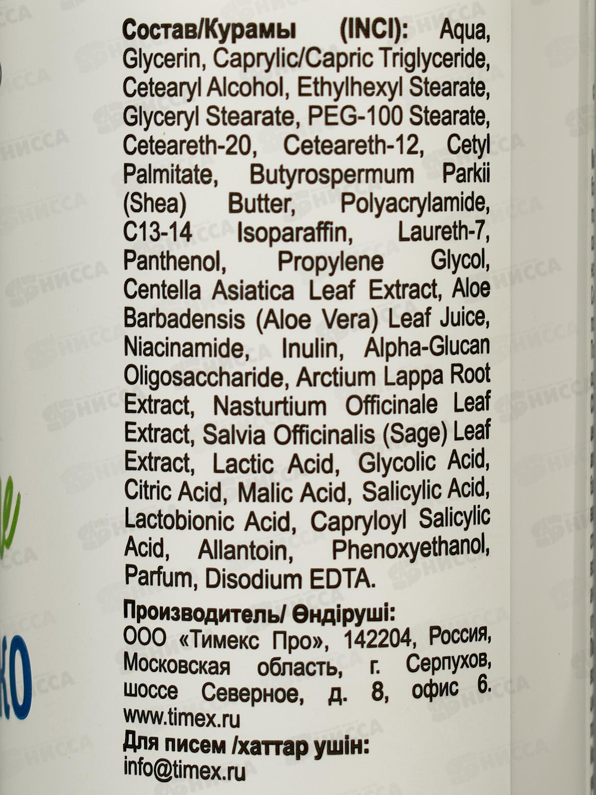 Состав: вода, глицерин, каприловый/каприновый триглицерид, цетеариловый спирт, этилгексилстеарат, глицерилстеарат, стеарат ПЭГ?100, цетеарет?20, цетеарет?12, цетилпальмитат, масло ши (Butyrospermum Parkii), полиакриламид, изопарафин C13–14, лаурет?7, пантенол, пропиленгликоль, экстракт листьев центеллы азиатской, сок листьев алоэ вера (Aloe Barbadensis), ниацинамид, инулин, альфа?глюкановый олигосахарид, экстракт корня лопуха (Arctium Lappa), экстракт листьев настурции (Nasturtium Officinale), экстракт листьев шалфея (Salvia Officinalis), молочная кислота, гликолевая кислота, лимонная кислота, яблочная кислота, салициловая кислота, лактобионовая кислота, каприлоилсалициловая кислота, аллантоин, феноксиэтанол, отдушка, динатриевая соль ЭДТА.