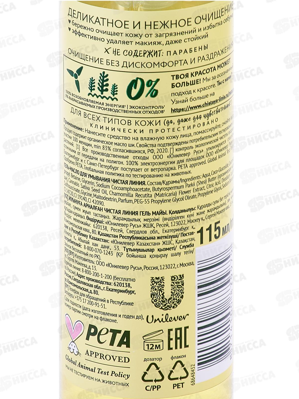 Концерн Калина Чистая Линия Гель-масло для умывания 115мл Natura *10