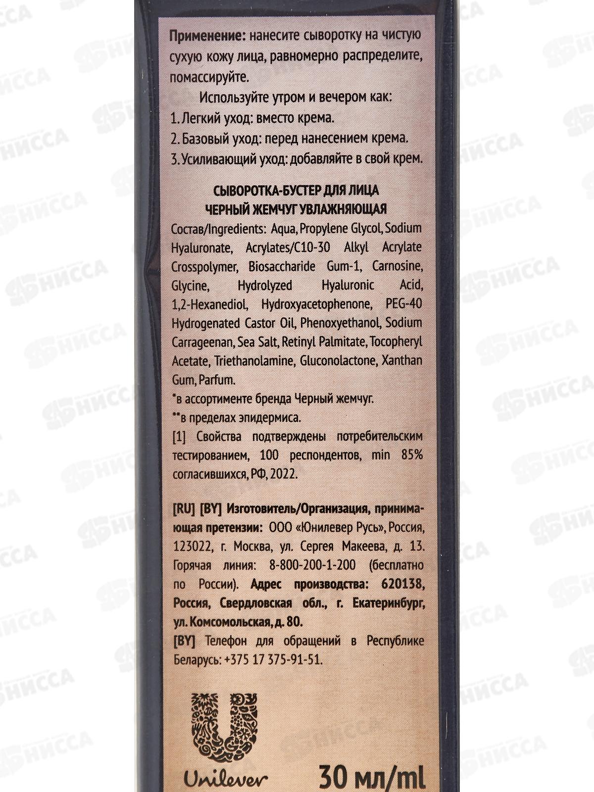 Концерн Калина Черный Жемчуг Сыворотка-бустер для лица Увлажняющая с гиалурон кислот 30мл *8