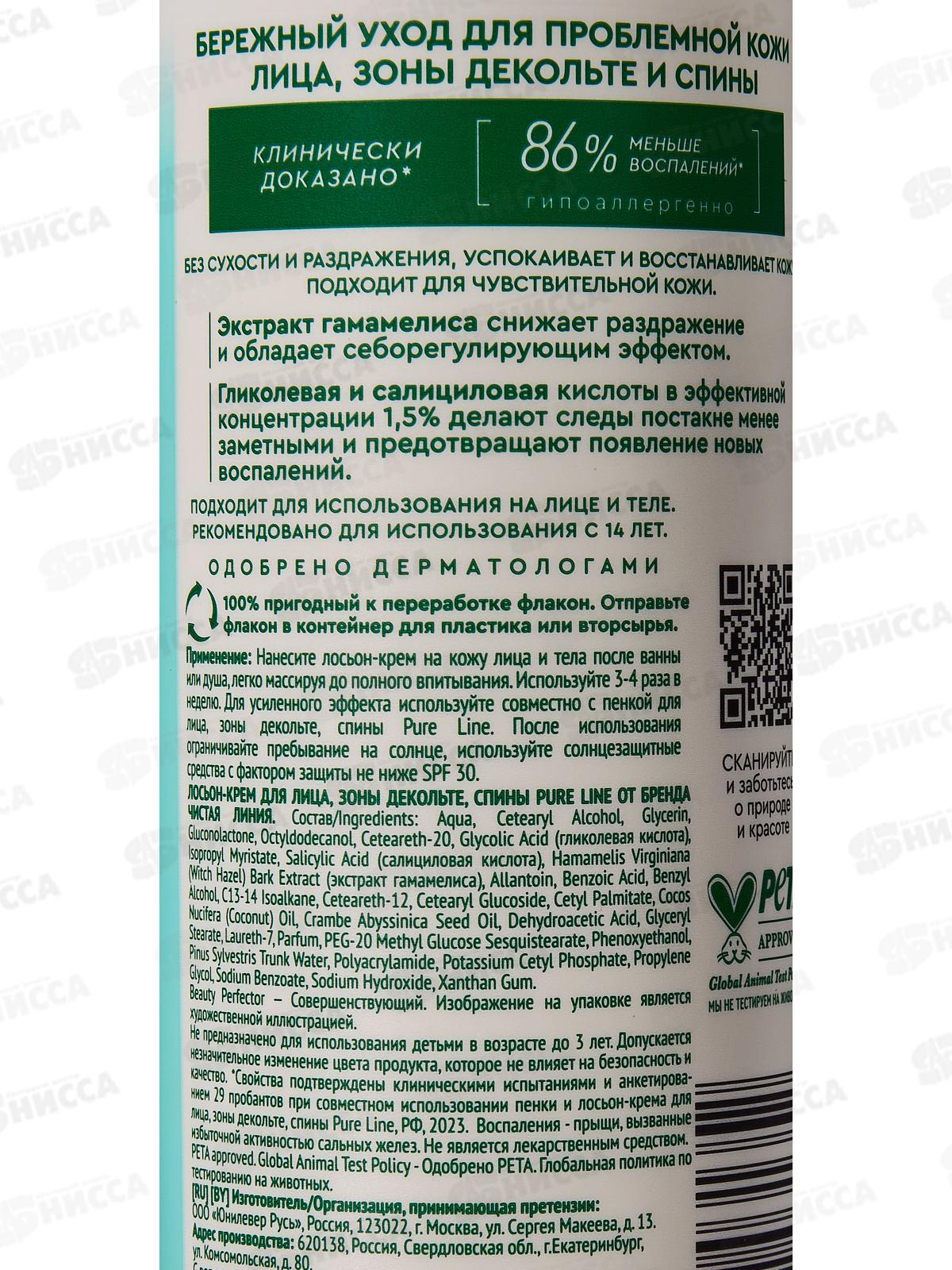 Концерн Калина Чистая Линия PL Лосьон-крем для лица 185мл *12