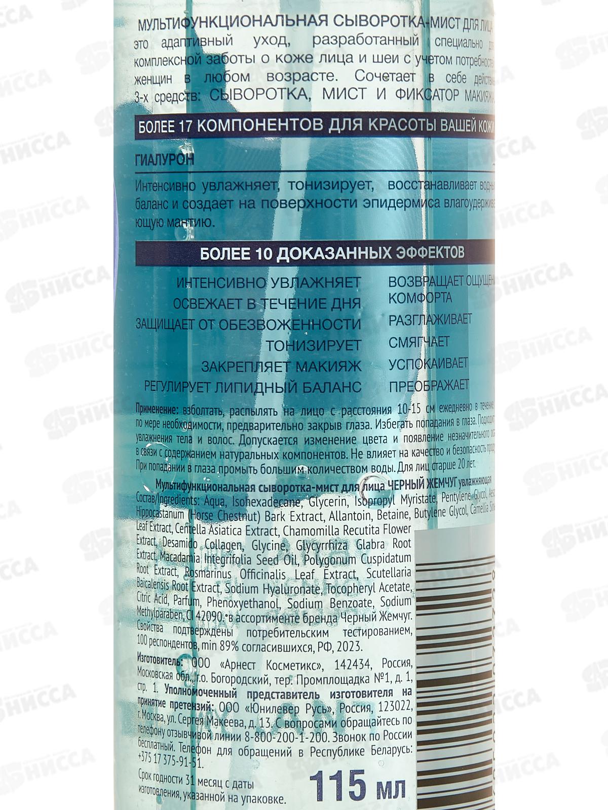 Концерн Калина Черный Жемчуг Мульти сыворотка-мист для лица увлажняющая 115мл *6