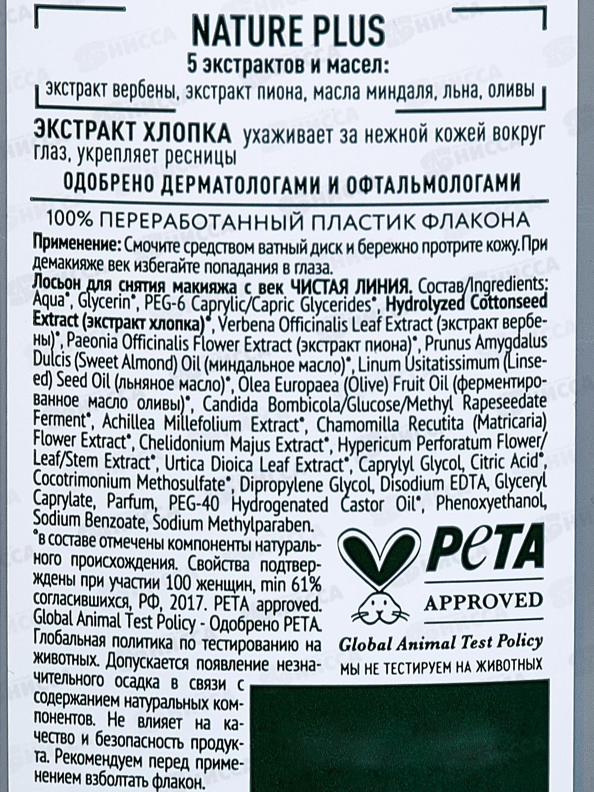 Концерн Калина Чистая Линия лосьон для снятия макияжа с век 100мл *5/20