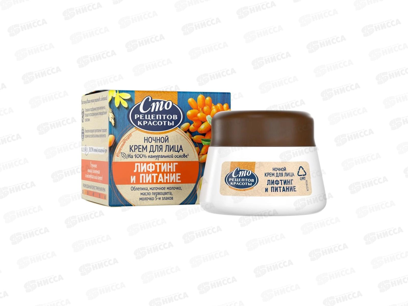 Концерн Калина 100 Рецептов Красоты крем ночной Лифтинг и питание 50мл *12