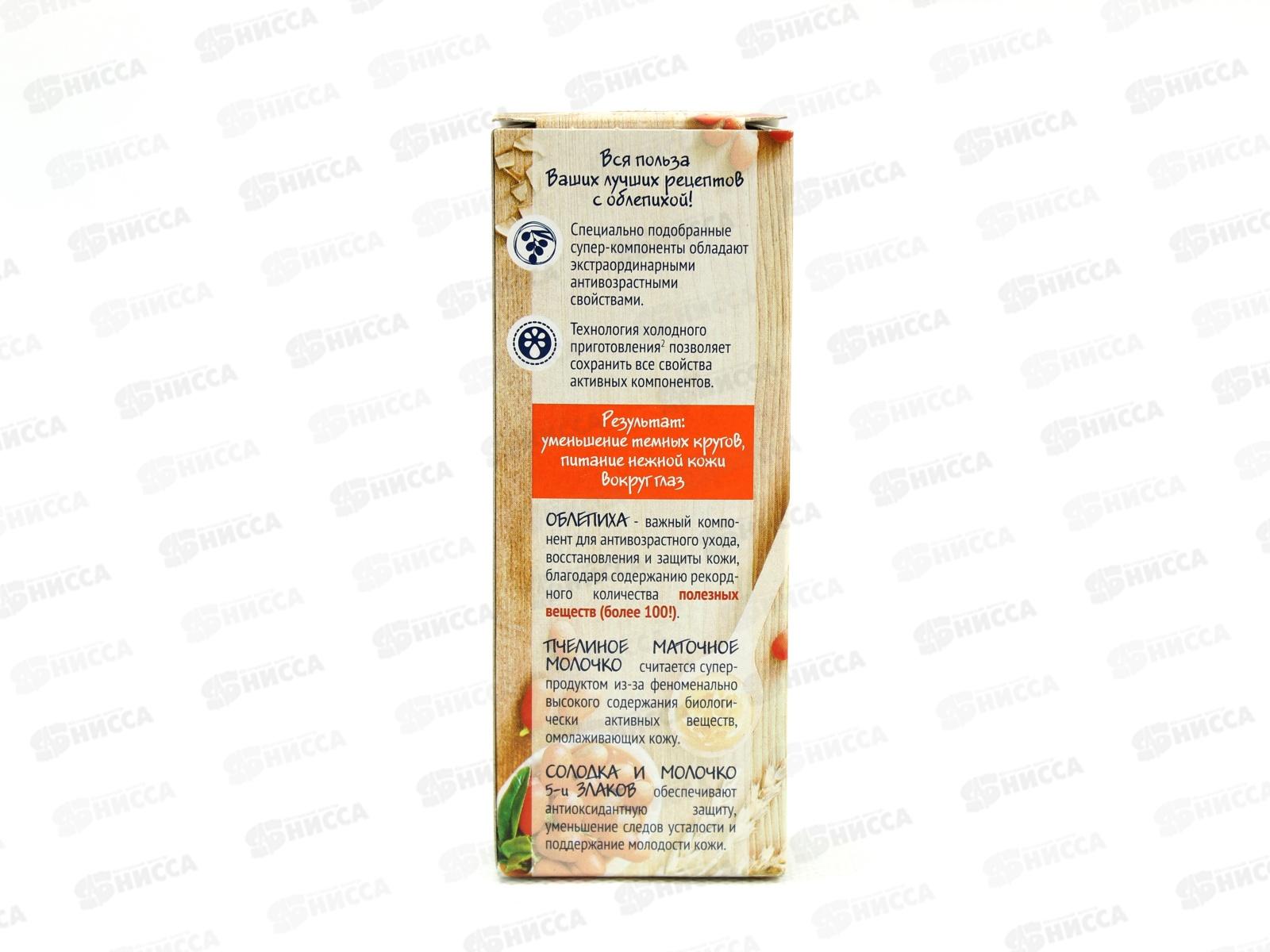 Кожа вокруг глаз – самая тонкая и нежная, она больше всего страдает от переутомления и стрессов. Также первые морщинки появляются именно вокруг глаз, причем достаточно рано. Но если заботливо ухаживать за кожей век, увлажнять и питать ее, можно значительно замедлить процессы старения. Крем для век на основе натуральных компонентов создает необходимый антивозрастной уход и сохраняется здоровье и красоту кожи вокруг глаз: интенсивно питает кожу век; уменьшает темные круги под глазами. Масло облепихи: содержит ударную дозу омолаживающих веществ, обладает витаминизирующим и противовоспалительным действием, смягчает и питает кожу. Пчелиное маточное молочко: замедляет процессу увядания кожи, стимулируя регенерацию клеток. Золотой ус: успокаивает чувствительную кожу вокруг глаз, устраняет темные круги под глазами. Витамины женской красоты А и Е: защитники кожи, предохраняют кожу от воздействия УФ-лучей и взаимно усиливают действие друг друга.
