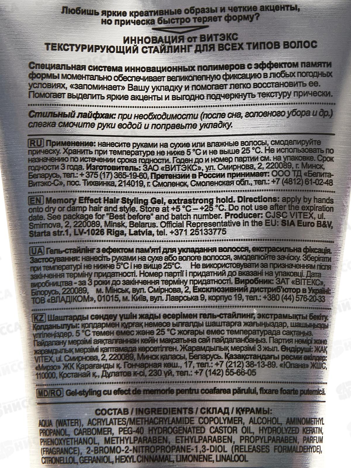 Специальная система инновационных полимеров с эффектом памяти формы моментально обеспечивает великолепную фиксацию в любых погодных условиях, «запоминает» Вашу укладку и помогает легко восстановить ее. Помогает выделить яркие акценты и выгодно подчеркнуть текстуру прически. Состав: Вода, сополимер акрилатов/метакриламида, этанол, аминометилпропанол, карбомер, пэг-40 гидрогенизированное касторовое масло, гидролизованный кератин, феноксиэтанол, метилпарабен, этилпарабен, пропилпарабен, парфюмерная композиция, 2-бром-2-нитропропан-1,3-диол, бутилфенилметилпропиональ, цитронеллол, гераниол, гексилциннамаль, лимонен, линалол.