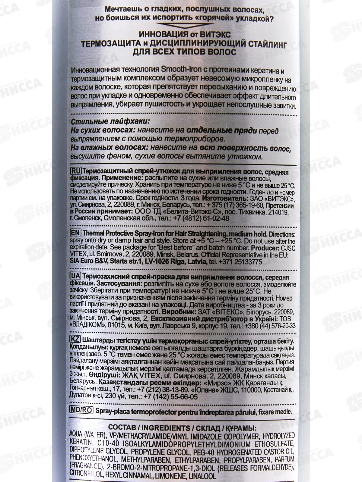 Инновационная технология Smooth-Iron с протеинами кератина и термозащитным комплексом образует невесомую микропленку на каждом волоске, которая препятствует пересыханию и повреждению волос при укладке и одновременно обеспечивает потрясающий эффект длительного выпрямления, убирает пушистость и укрощает непослушные завитки. Состав: Вода, сополимер винилпирролидона/метакриламида/винилимидазола, гидролизованный кератин, этосульфат c10-40 изоалкиламидопропилэтилдимония, дипропиленгликоль, пропиленгликоль, пэг-40 гидрогенизированное касторовое масло, феноксиэтанол, метилпарабен, этилпарабен, пропилпарабен, парфюмерная композиция, 2-бром-2-нитропропан-1,3-диол, бутилфенилметилпропиональ, цитронеллол, гексилциннамаль, лимонен, линалол.