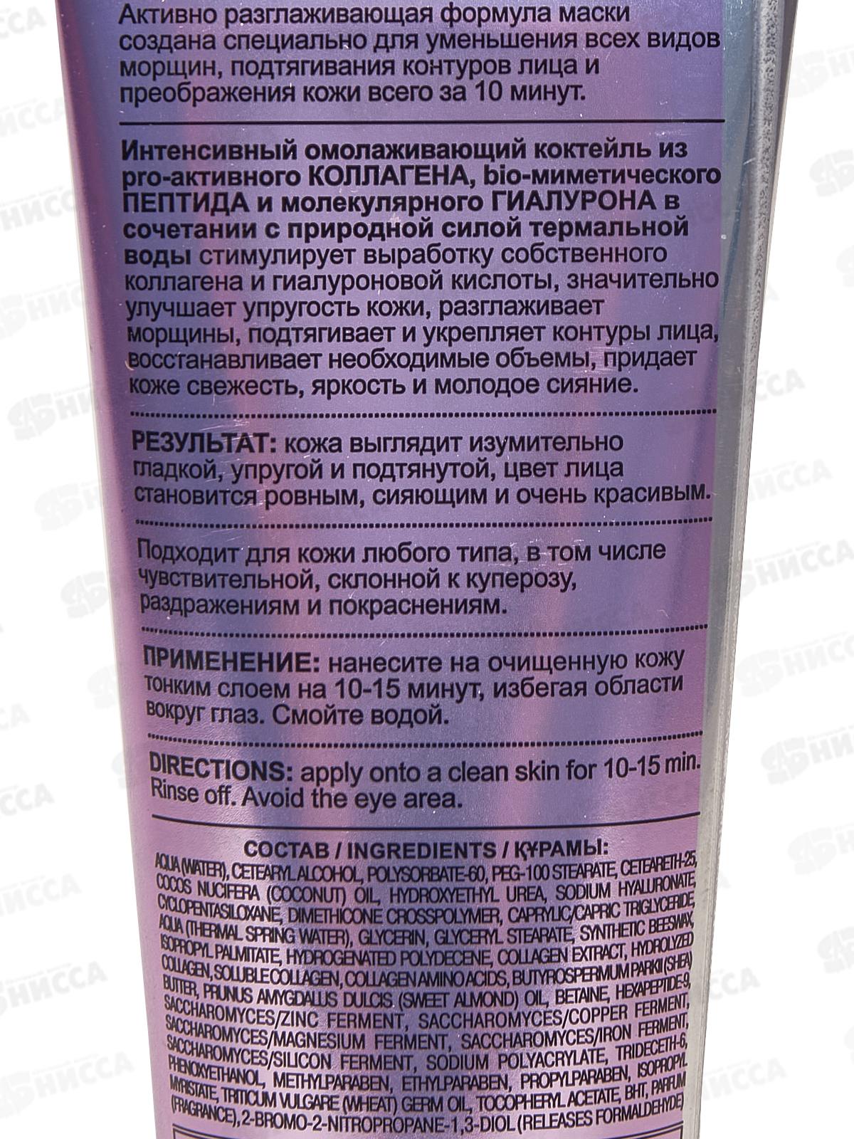 Активно разглаживающая формула маски создана специально для уменьшения всех видов морщин, подтягивания контуров лица и преображения кожи всего за 10 минут. Состав: диатомовая земля, глюкоза, альгин, сульфат кальция, карбонат магния, 1,2-гександиол, пирофосфат тетранатрия, аллантоин, гидролизованный коллаген, этилгексилглицерин, экстракт Centella Asiatica (центеллы), экстракт жемчуга, экстракт цветов Nelumbo Nucifera (индийского лотоса), CI 77019 (слюда), CI 77491 (оксиды железа), гидролизованная гиалуроновая кислота, аденозин.