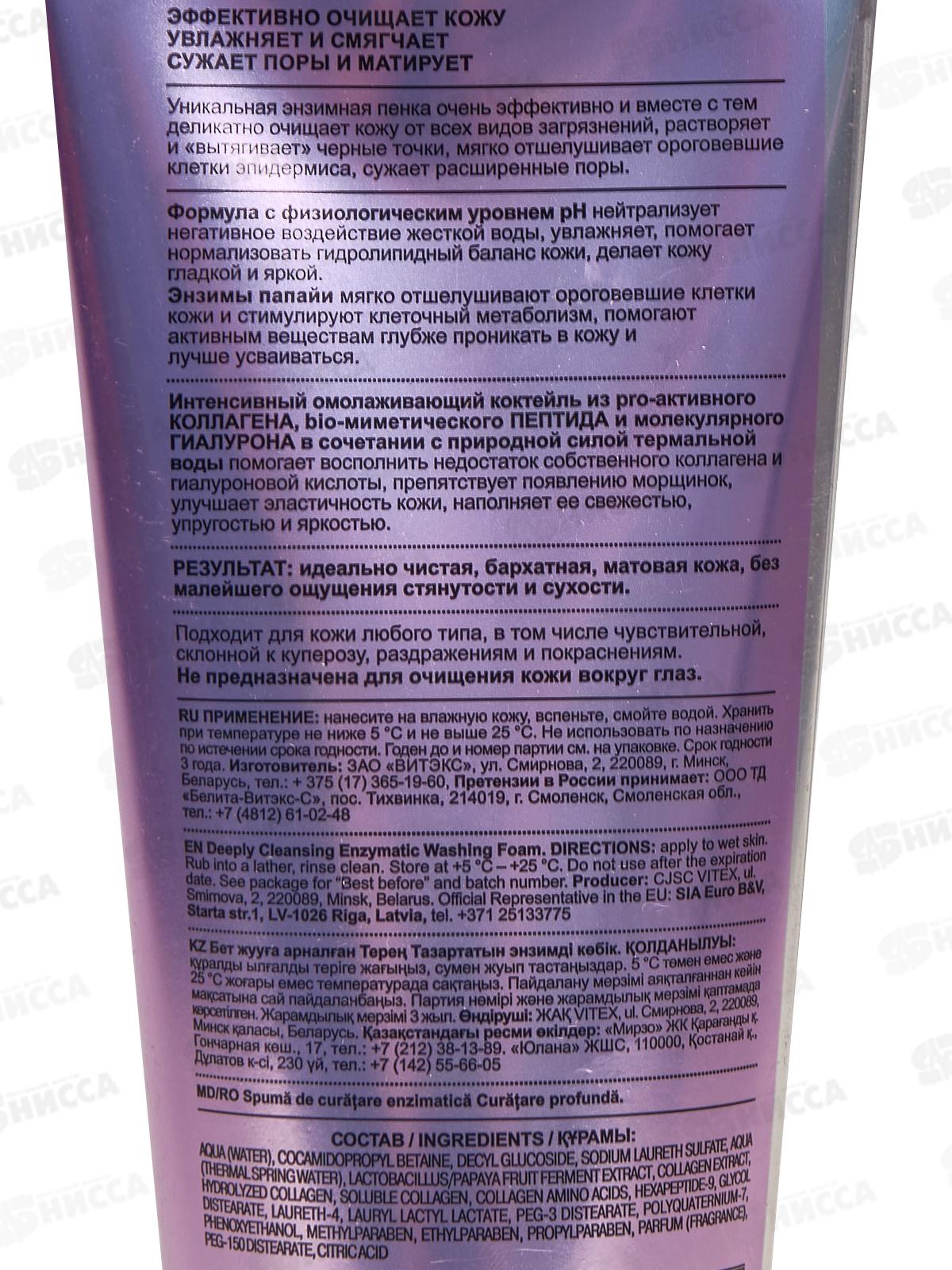 Уникальная энзимная пенка очень эффективно и вместе с тем деликатно очищает кожу от всех видов загрязнений, растворяет и «вытягивает» черные точки, мягко отшелушивает ороговевшие клетки эпидермиса, сужает расширенные поры. Состав: вода, кокамидопропилбетаин, децилглюкозид, лауретсульфат натрия, термальная вода, гликольдистеарат, лаурет-4, лауриллактиллактат, ПЭГ-3 дистеарат, ферментированный лактобациллами экстракт папайи, экстракт коллагена, гидролизованный коллаген, растворимый коллаген, аминокислоты коллагена, гексапептид-9, поликватерниум-7, феноксиэтанол, метилпарабен, этилпарабен, пропилпарабен, парфюмерная композиция, ПЭГ-150 дистеарат, лимонная кислота.
