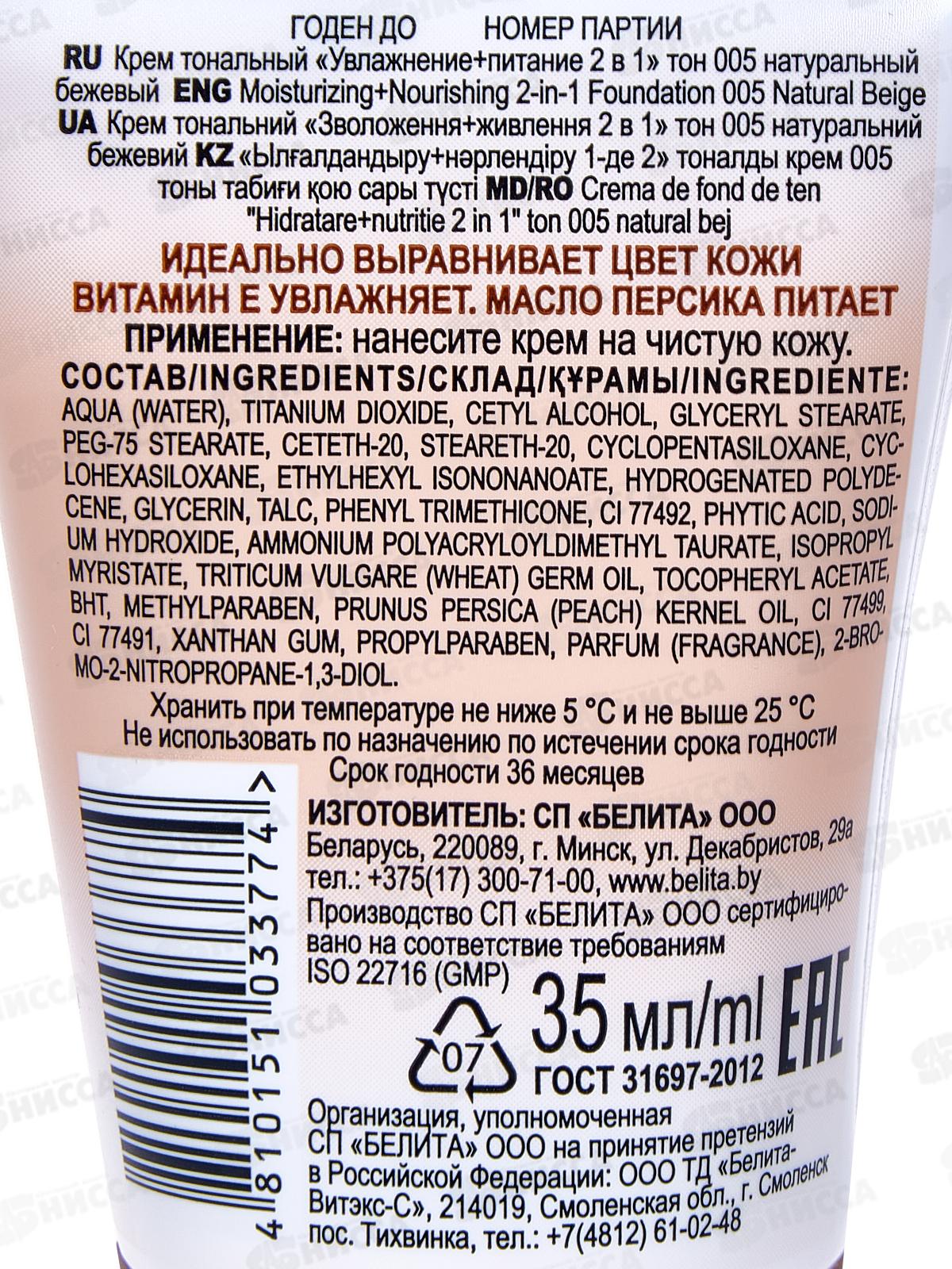 Cl Крем тональный Увлажнение + Питание тон 005(нат бежевый) 35мл *15