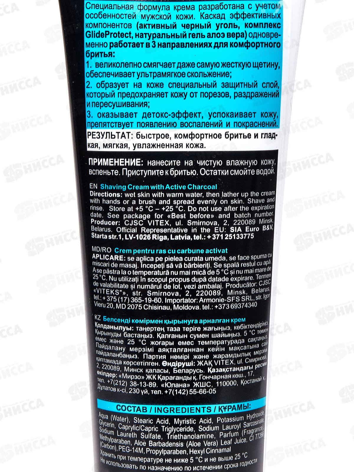Специальная формула крема разработана с учетом особенностей мужской кожи. Каскад эффективных компонентов (активный черный уголь, комплекс GlideProtect, натуральный гель алоэ вера) одновременно работает в 3 направлениях для комфортного бритья. Состав: вода, стеариновая кислота, миристиновая кислота, гидроксид калия, глицерин, глицерилтрикаприлат/капрат, лауроилсаркозинат натрия, лауретсульфат натрия, триэтаноламин, парфюмерная композиция, метилпарабен, сок листьев Aloe barbadensis (алоэ), CI 77266, ПЭГ-14М, пропилпарабен, гексилциннамаль.