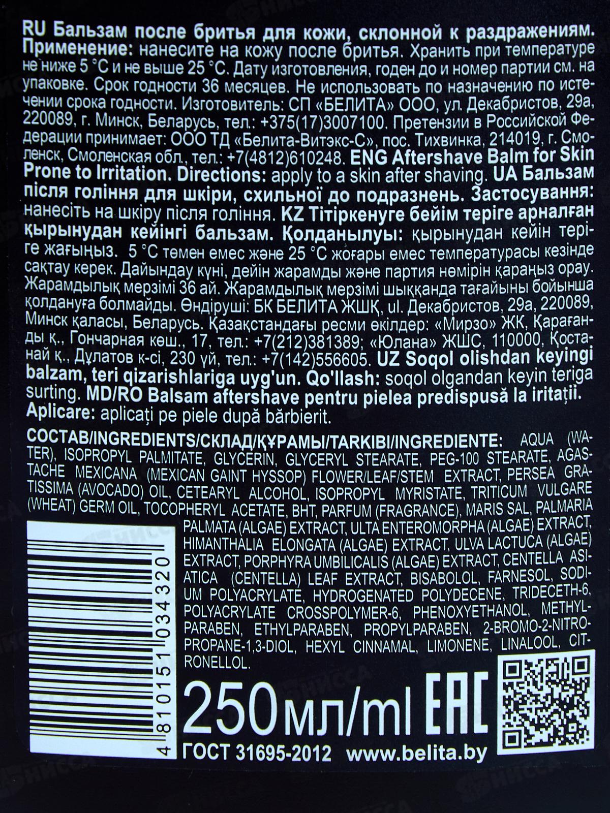 Belita For Men Бальзам п/бритья д/чувст кожи 250мл *11