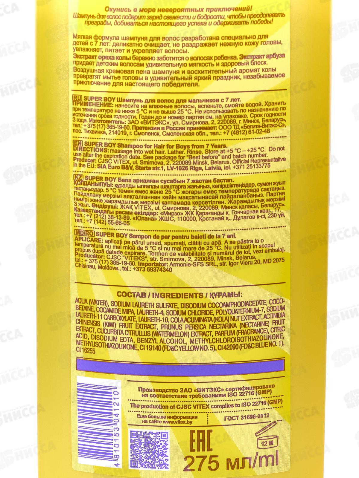 SUPER BOY Шампунь д/в для мальчиков 7+ 275мл *12