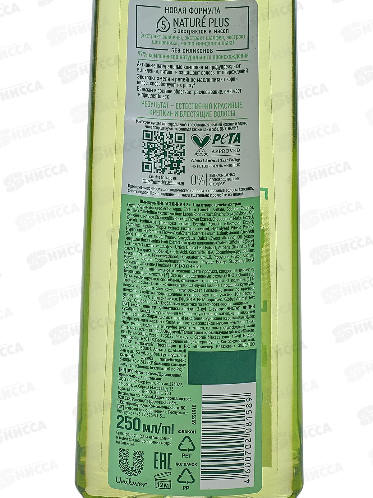 Концерн Калина Чистая Линия шампунь 250мл Хмель 2в1 *6/12
