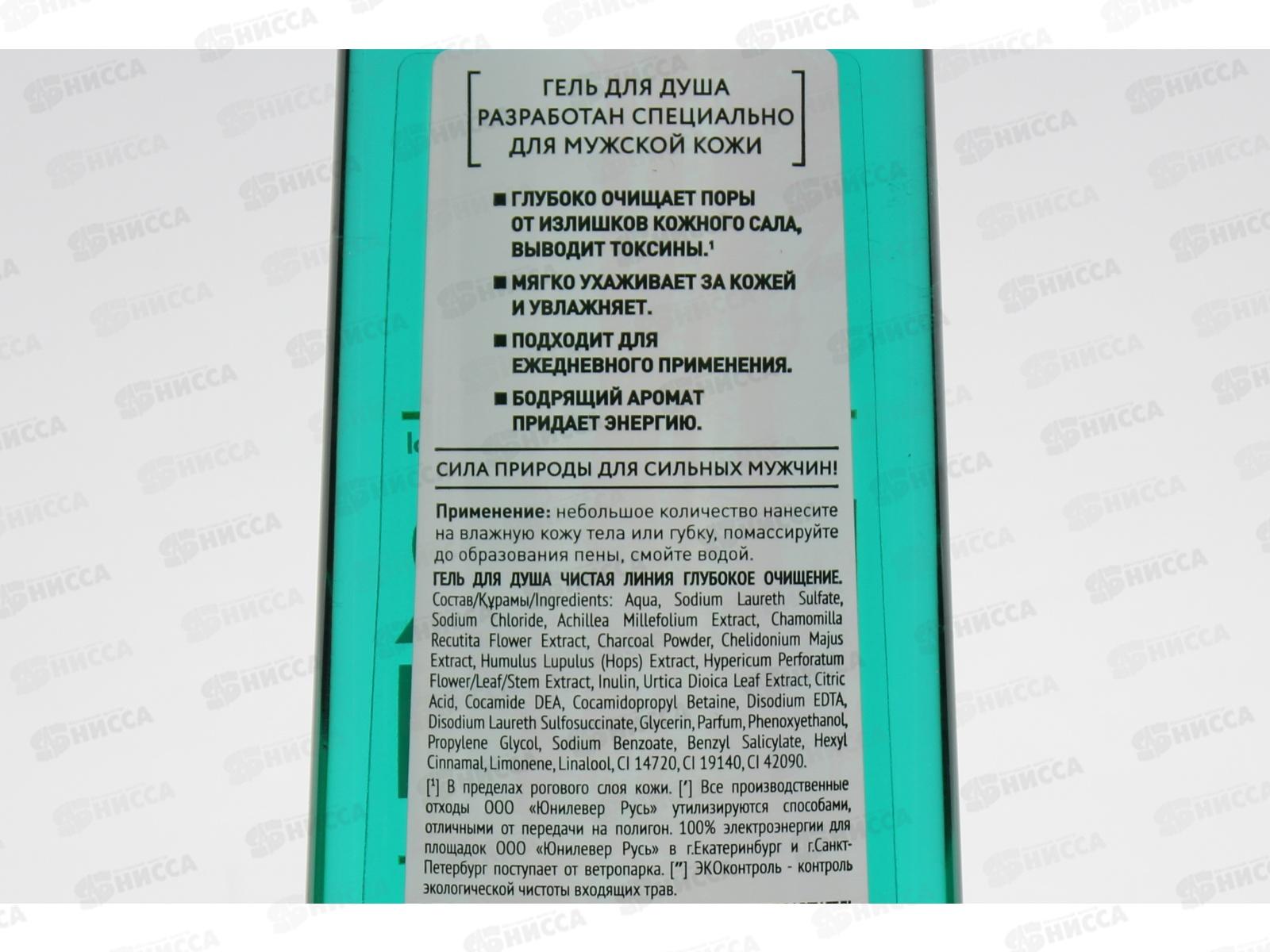 Концерн Калина Чистая Линия гель для душа 400мл Глубокое очищение *6/12