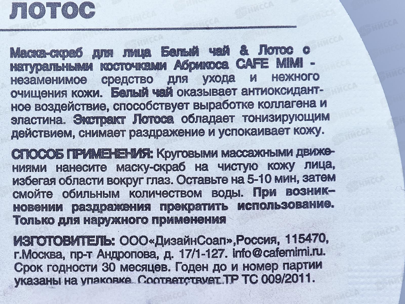 Кафе Мими SF Маска-скраб для лица Белый чай и Лотос 10мл 513142 *40