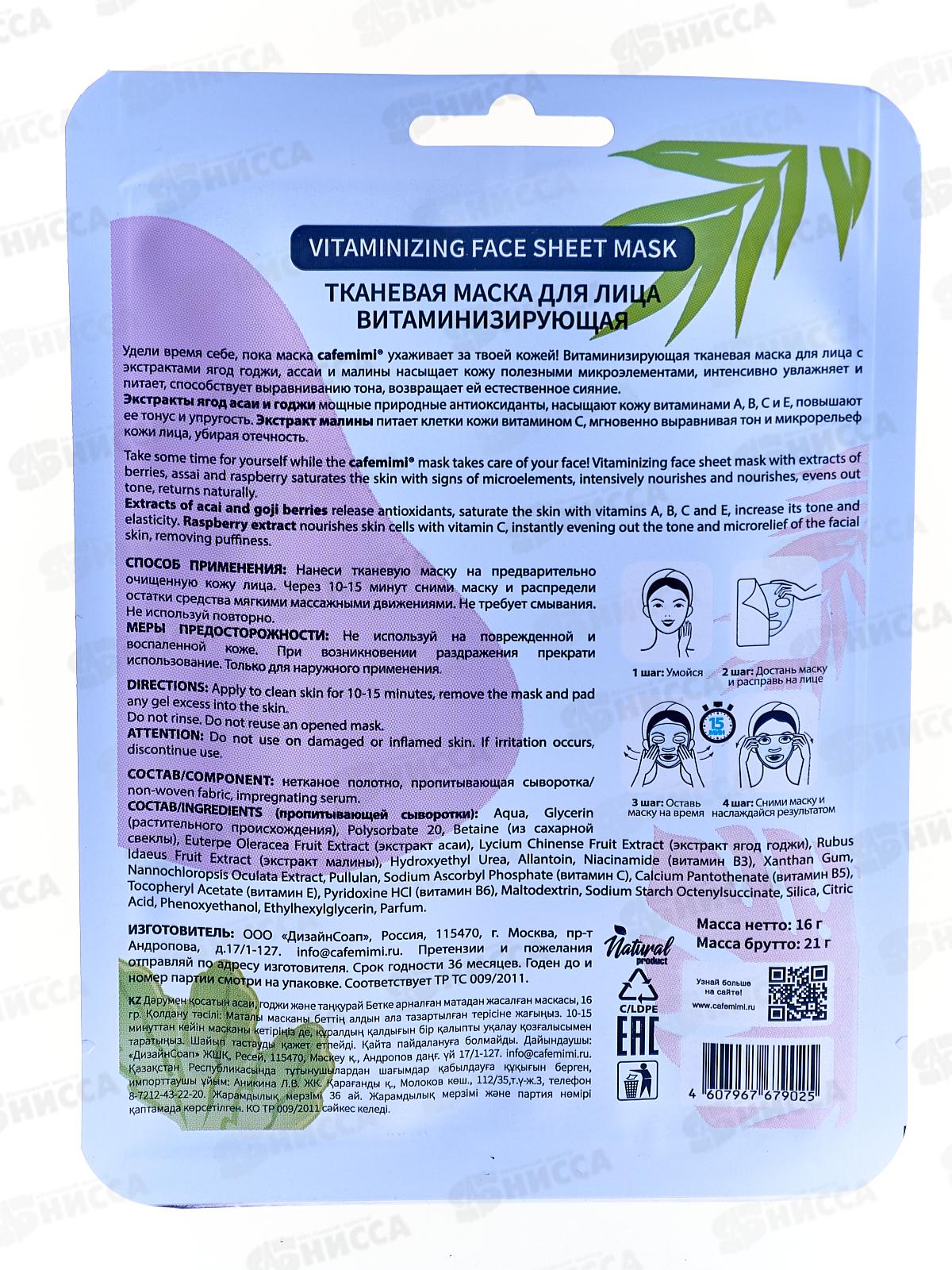 Кафе Мими Тканевая маска для лица Витаминизирующая 21г 573130 *20