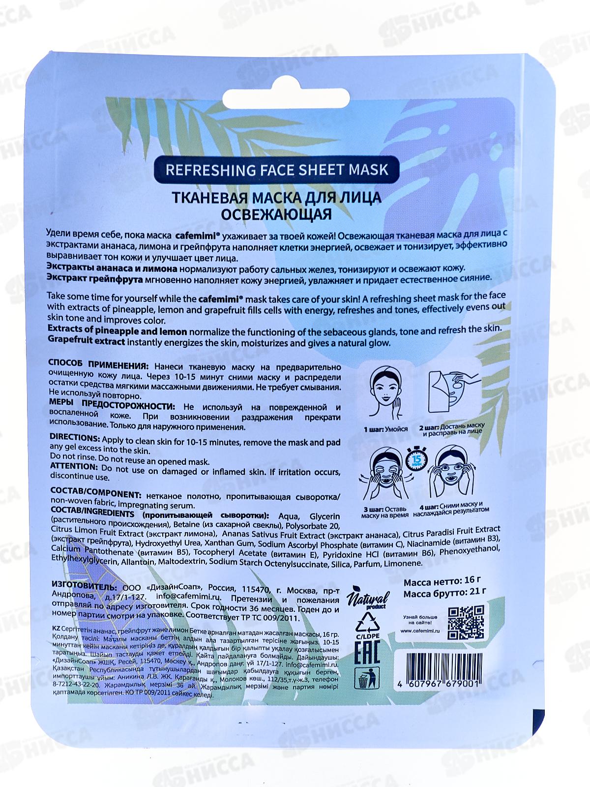 Кафе Мими Тканевая маска для лица Освежающая 21г 573128