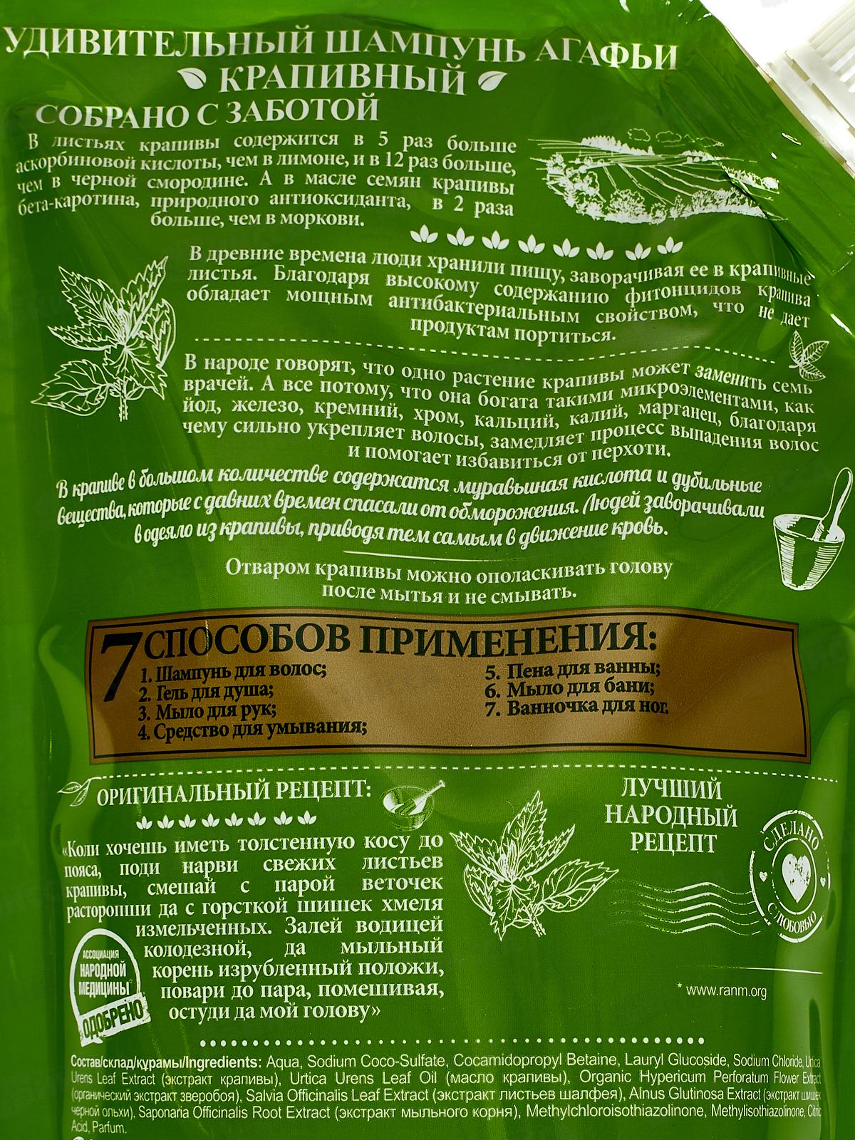 Рецепты Бабушки Агафьи Удивительная серия Агафьи шампунь Крапивный 500мл 5396 дой-пак *4/12