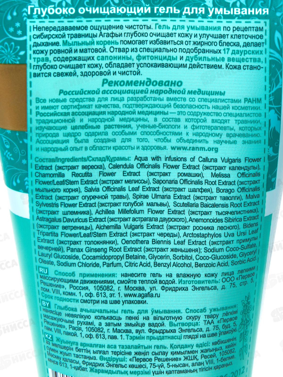 Рецепты Бабушки Агафьи Гель для умывания очищающий глубоко 150мл *20 6911