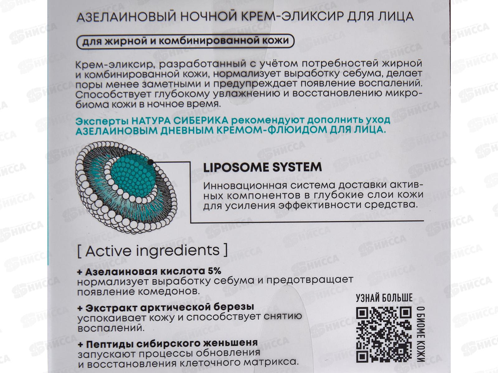 Natura Siberica LBAA Крем-элексир для лица Азелаиновый ночной 50мл *6 5856