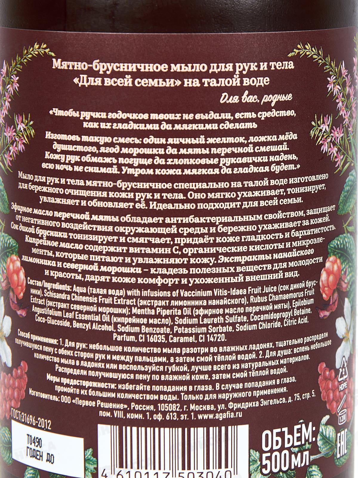 Рецепты Бабушки Агафьи Сибирская Травница Мыло для тела Мятно-брусничное 500мл *12 3040