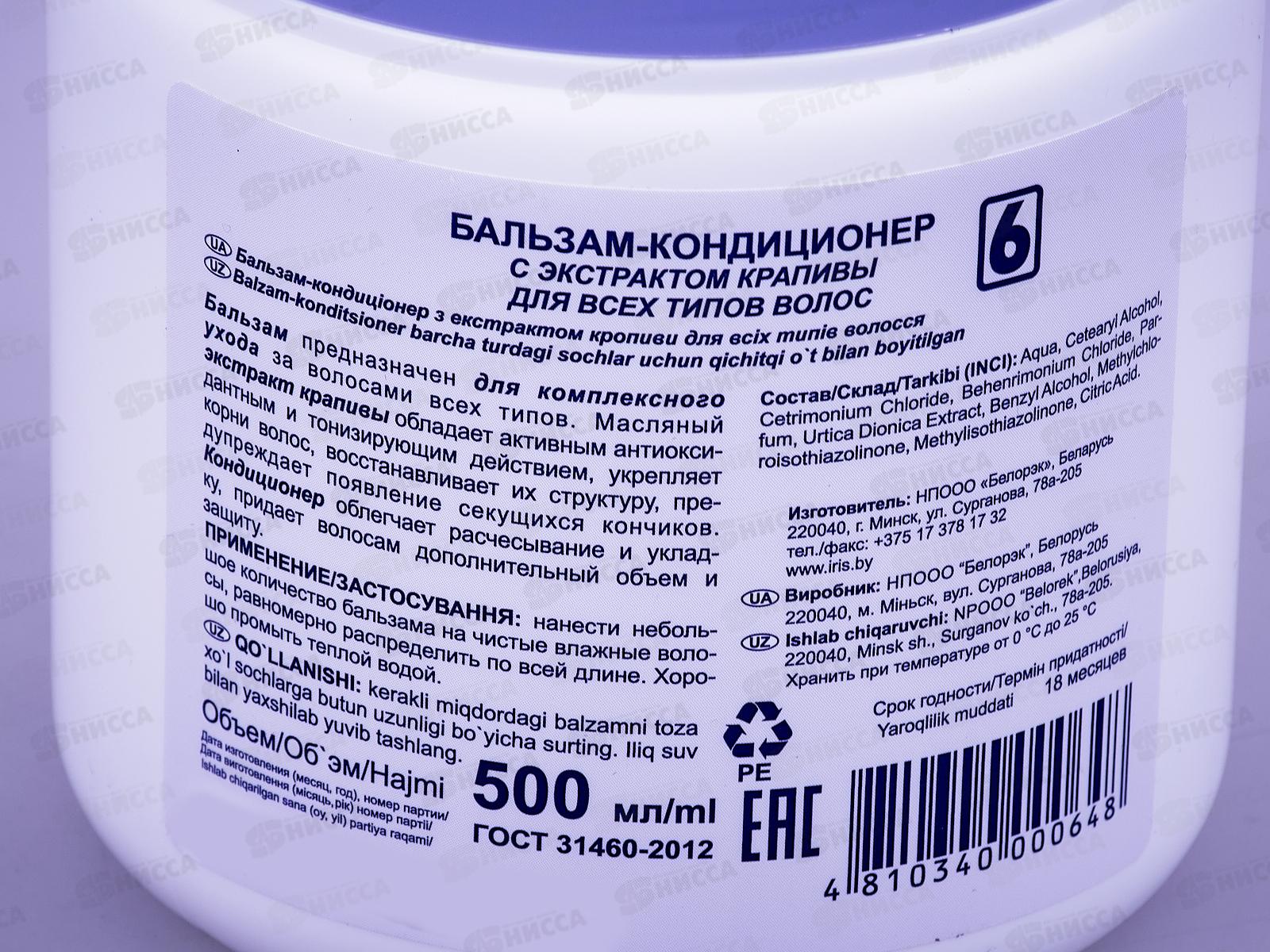 IRIS Бальзам-кондиционер для волос №6 Крапива 500мл *12