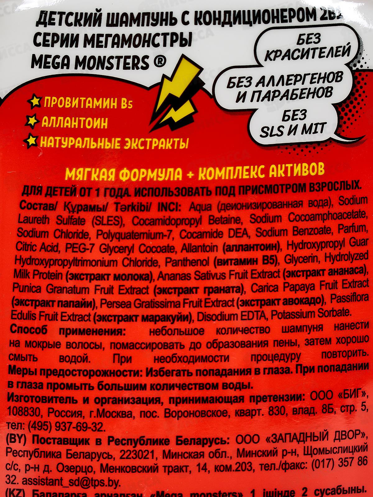 Мегамонстры Шампунь для волос 2в1 300мл *6