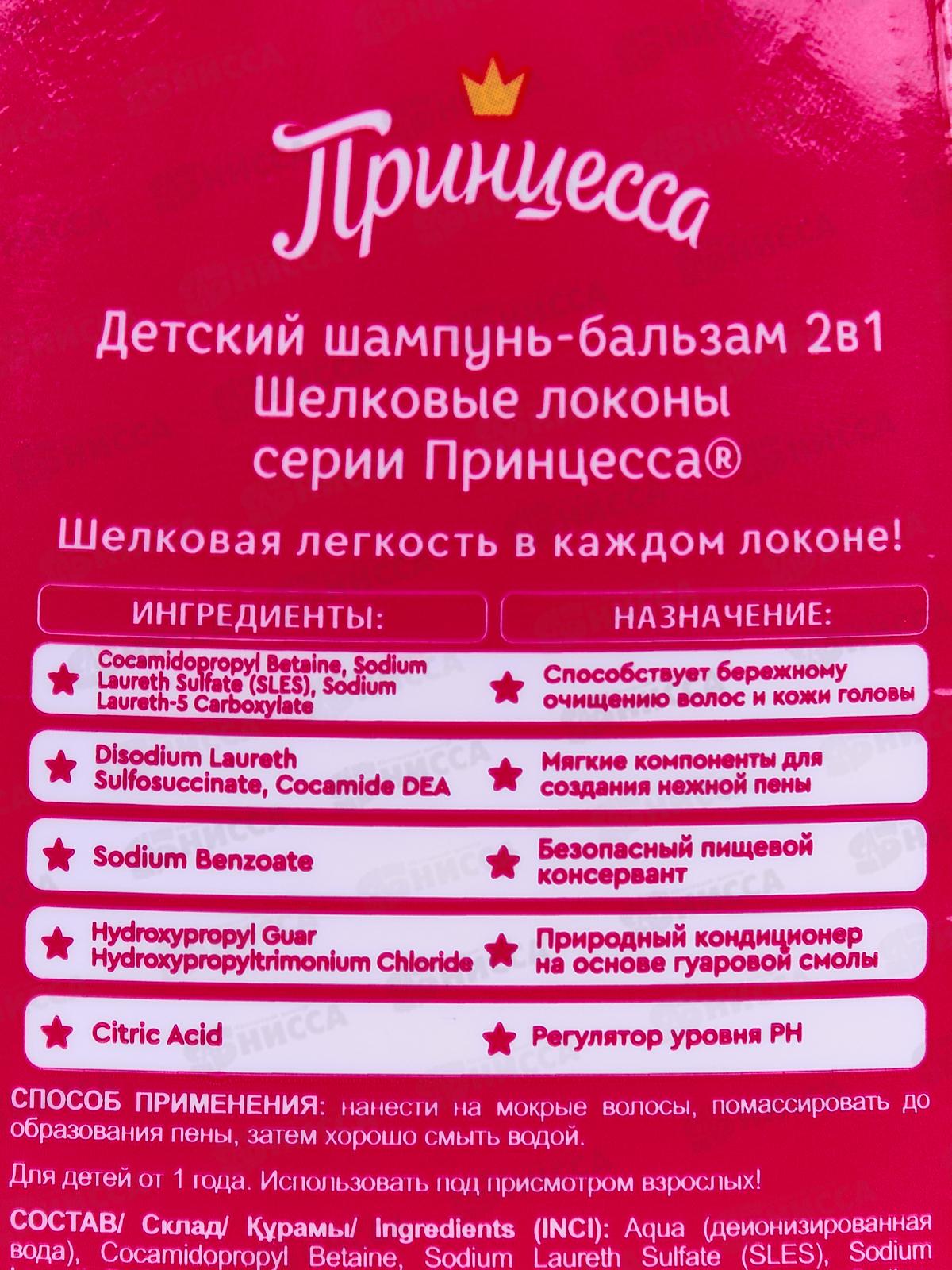 ПРИНЦЕССА шампунь-бальзам для волос Шелковые локоны 250мл *10