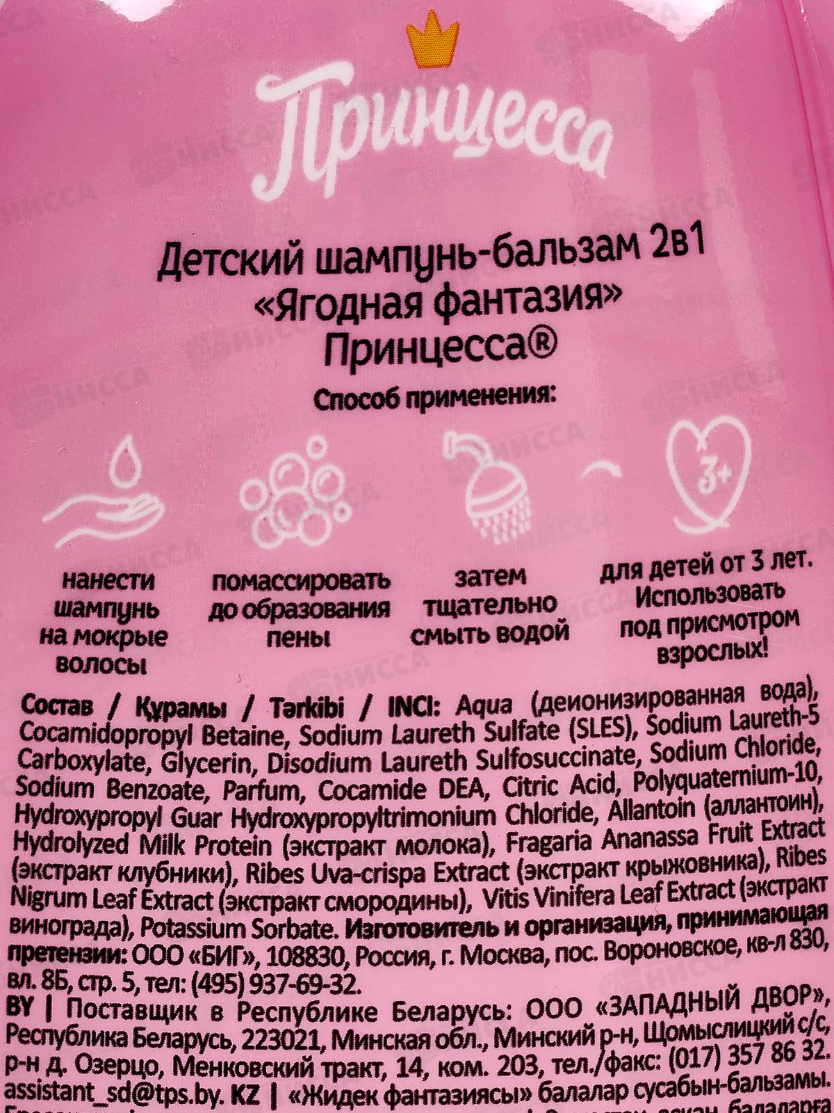ПРИНЦЕССА шампунь-бальзам для волос Ягодная фантазия 400мл *8