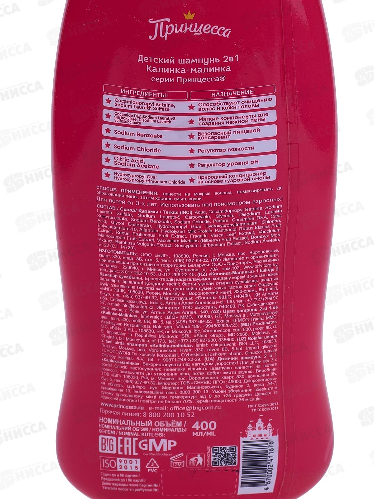 ПРИНЦЕССА шампунь для волос 2в1 Калинка-Малинка 400г*8