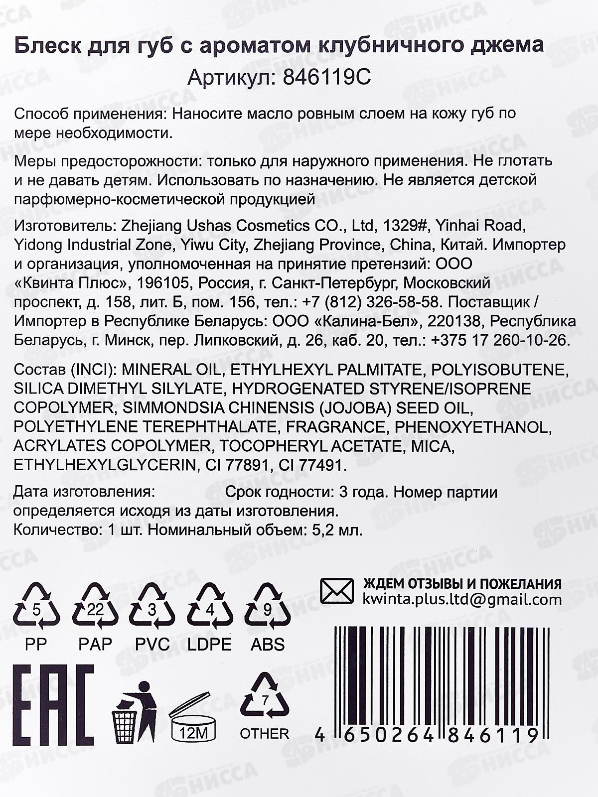 Состав: минеральное масло, этилгексилпальмитат, полисобутен, диметилсилилат диоксида кремния, гидрогенизированный сополимер стирола и изопрена, масло семян симмондсии китайской (жожоба), полиэтилентерефталат, отдушка, феноксиэтанол, сополимер акрилатов, токоферилацетат, слюда, этилгексилглицерин, ci 77891, ci 77491.