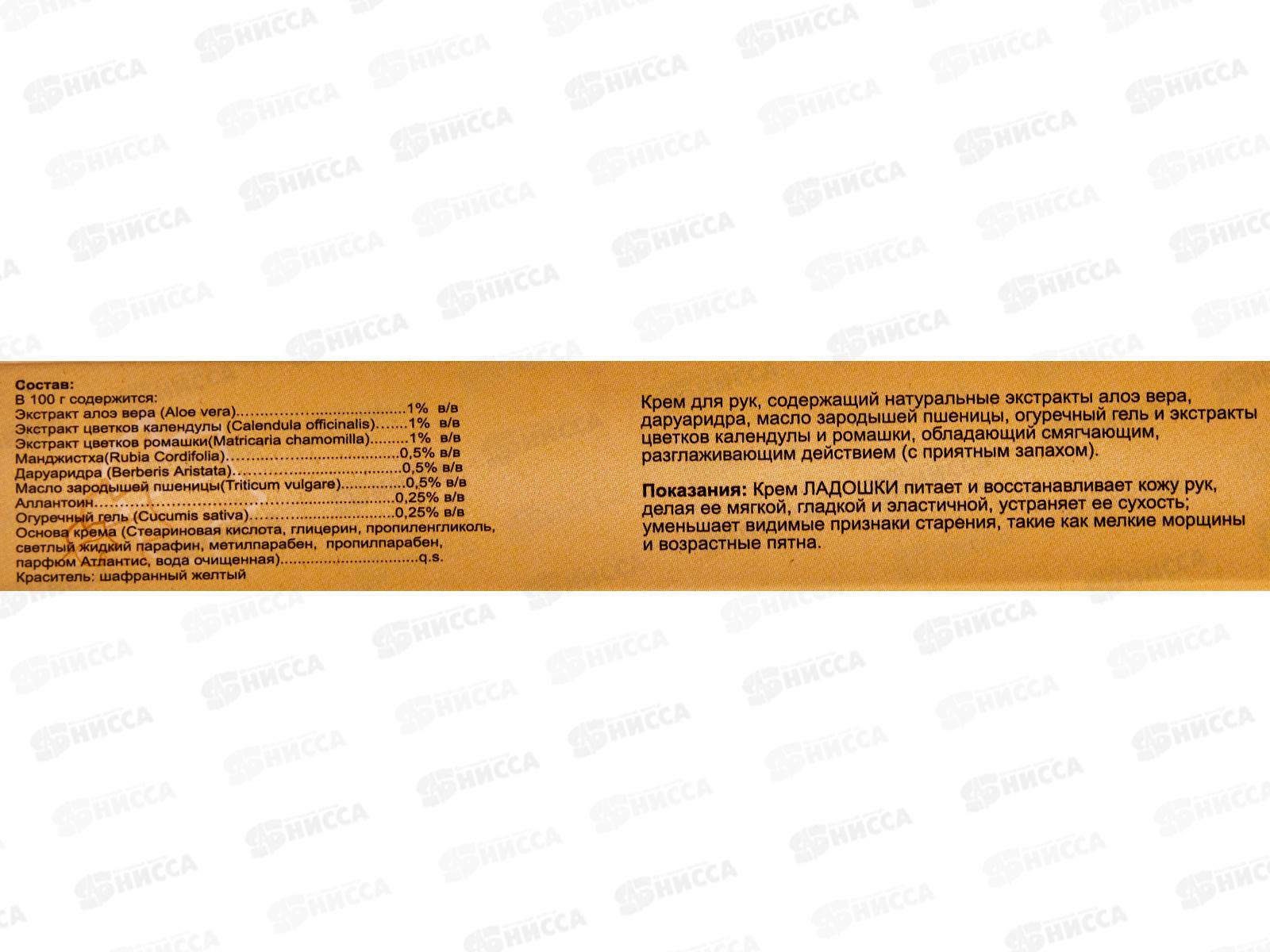 В течение дня кожа рук подвержена постоянному воздействию и травматизму. Во время домашних работ, на улице, даче, во время отдыха и прогулок, перемена температурного режима, порывы ветра и солнечные лучи негативно воздействуют на водный баланс кожного покрова. Именно поэтому индийские косметологи создали защитный крем для рук Ладошки от компании Herb Extra. Крем для рук Ладошки поможет защитить и сохранить естественную влагу. В его составе собраны лучшие представители аюрведических компонентов, которые нежно заботятся, питают и увлажняют кожу. Благодаря натуральным маслам продлевается молодость и сохраняется упругость, выравнивается цвет и сглаживаются морщины. В 100 г крема содержится: экстракт алоэ вера (Aloe vera) 1 %, экстракт цветков календулы (Calendula officinalis) 1%, экстракт цветков ромашки (Matricariacha chamomila) 1 %, Манджистха (Rubia Cordifolia) 0,5 %, дарухаридра (Berberis aristata) 0,5 %, масло зародышей пшеницы (Triticum vulgare) 0,5 %, Аллантоин 0,25%, Огуречный гель (Cucumis sativa) 0,25%, основа крема.