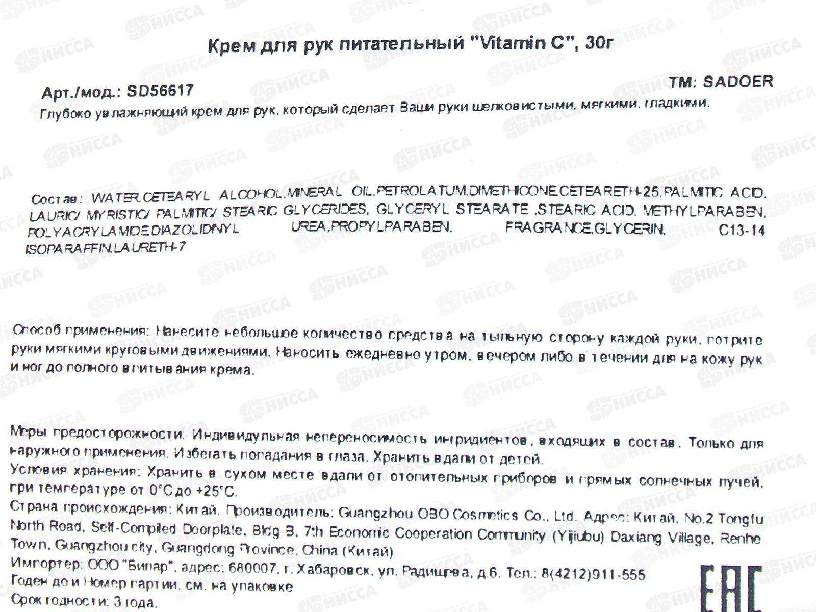 OBO Sadoer крем для рук Vitamin C питат 30мл дой-пак *1
