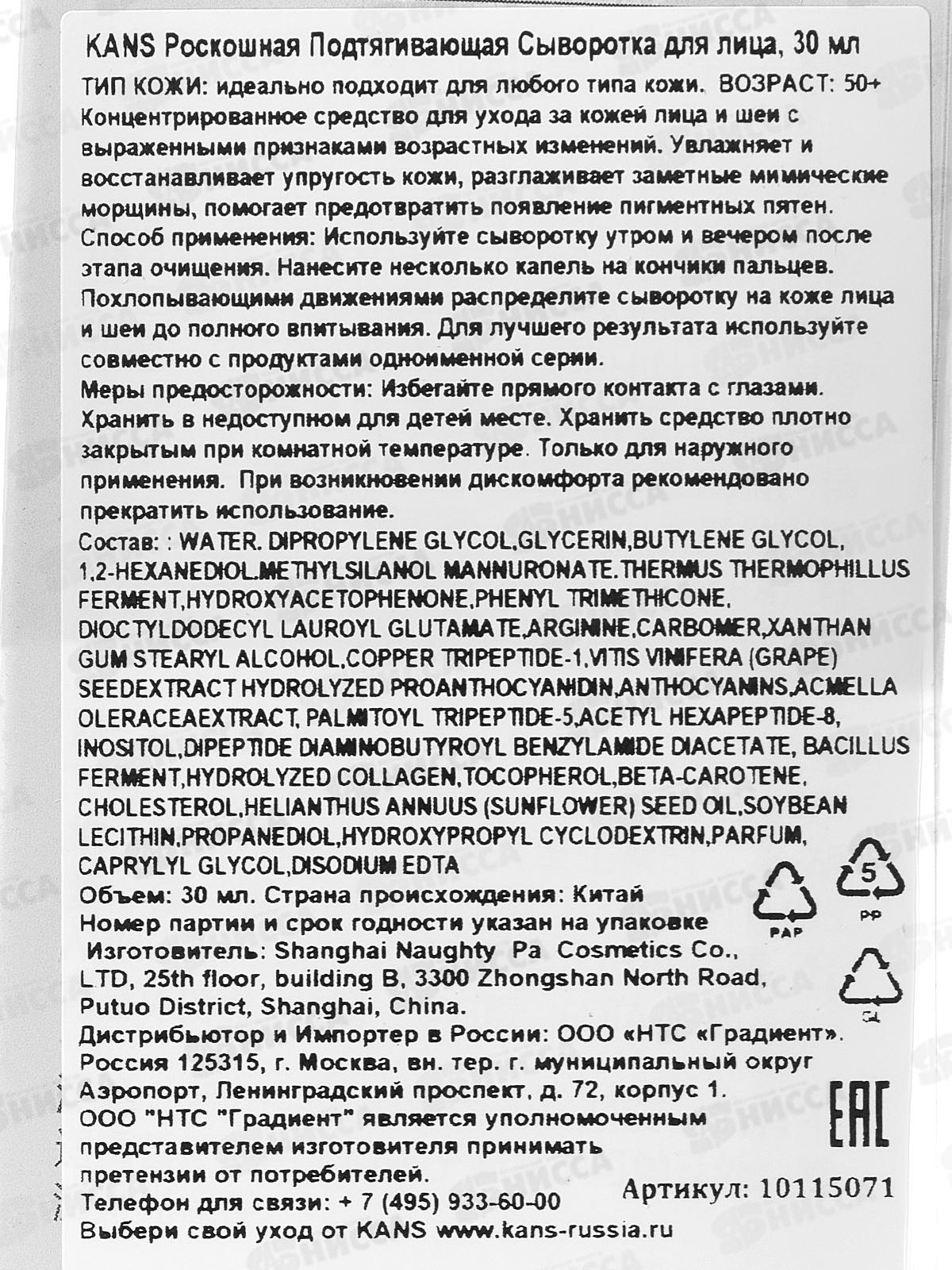 KANS Роскошная подтягивающая сыворотка для лица 30мл