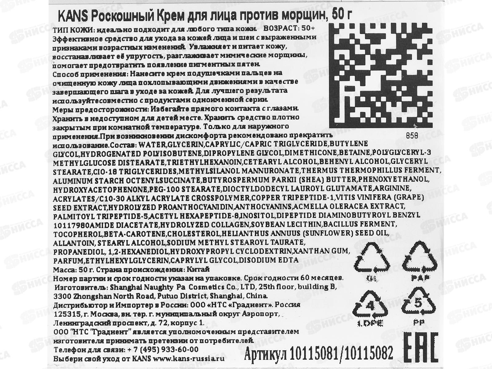 KANS Роскошный крем для лица против морщин 50г