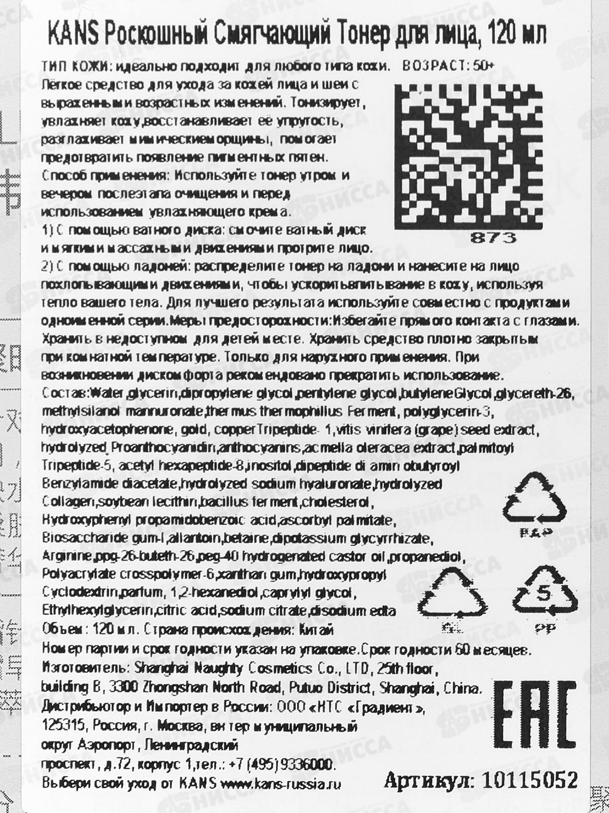 Состав: вода, глицерин, дипропиленгликоль, пентиленгликоль, бутиленгликоль, глицеринет-26, метилсилол маннуронат, фермент термофильных бактерий Thermus thermophilus, полиглицерин-3, гидроксиацетофенол, золото, медный трипептид-1, экстракт семян винограда (Vitis vinifera), гидролизованный проантоцианидин, антоцианы, экстракт акмеллы огородной, пальмитоилтрипептид-5, ацетилгексапептид-8, инозитол, дипептид диаминобутироилбензиламид диацетат, гидролизованный гиалуронат натрия, гидролизованный коллаген, соевый лецитин, фермент бацилл, холестерол, гидроксифенилпропанимидобензойная кислота, аскорбилпальмитат, биосахаридная камедь-1, аллантоин, бетаин, бисглицирризинат калия, аргинин, ППГ-26-бутеф-26, ПЭГ-40 гидрогенизированное касторовое масло, пропиленгликоль, сополимер полиакрилата-6, ксантановая камедь, гидроксипропилциклодекстрин, парфюмерная композиция, 1,2-гександиол, каприлилгликоль, этилгексилглицерин, лимонная кислота, цитрат натрия, динатриевая соль ЭДТА.