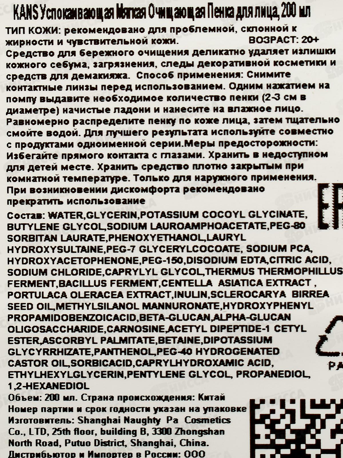 KANS Успокаивающая мягкая очищающая пенка для лица 200мл