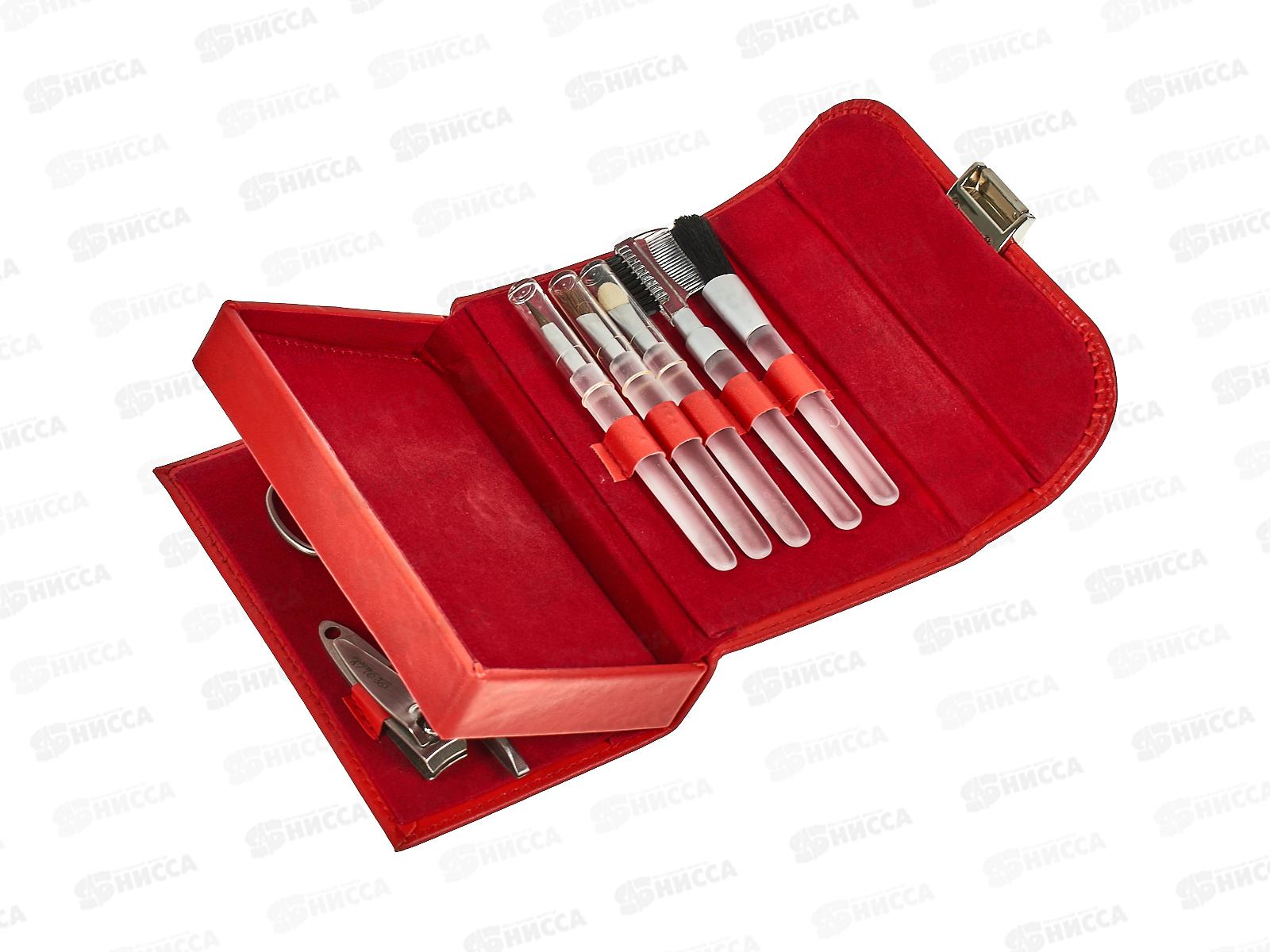 Маникюрный набор 9 предметов красный футляр из экокожи 107-012