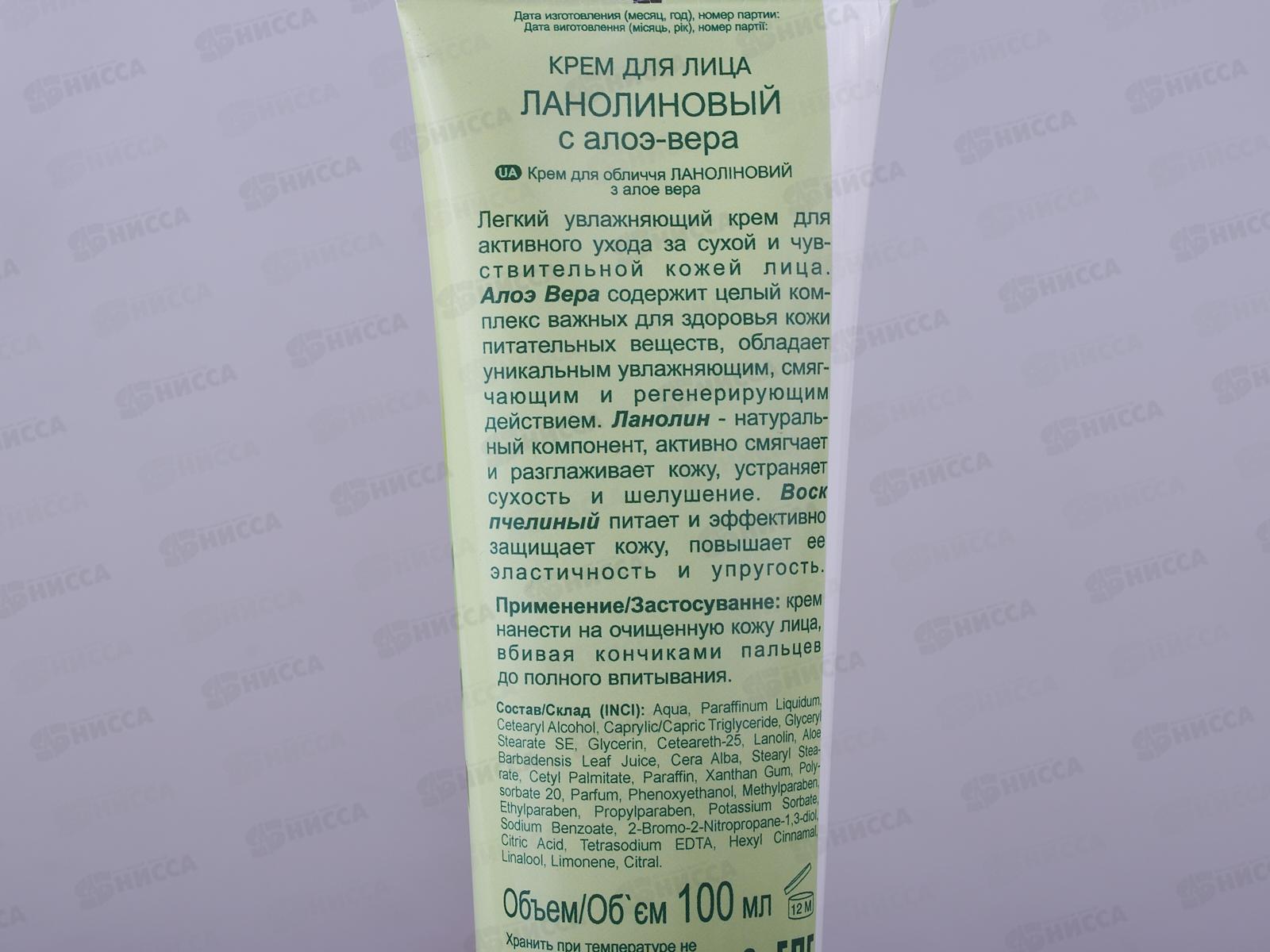 Ланолиновый крем для лица с Алоэ вера, 100 мл. Алоэ вера обладает уникальным увлажняющим, смягчающим и регенерирующим действием. Ланолин – натуральный компонент, активно смягчает и разглаживает кожу.