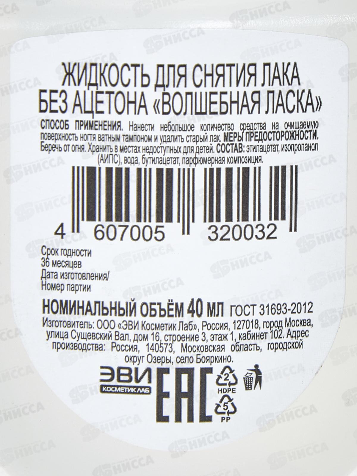 Жидкость для снятия лака Ласка без ацетона 40мл пластик *36