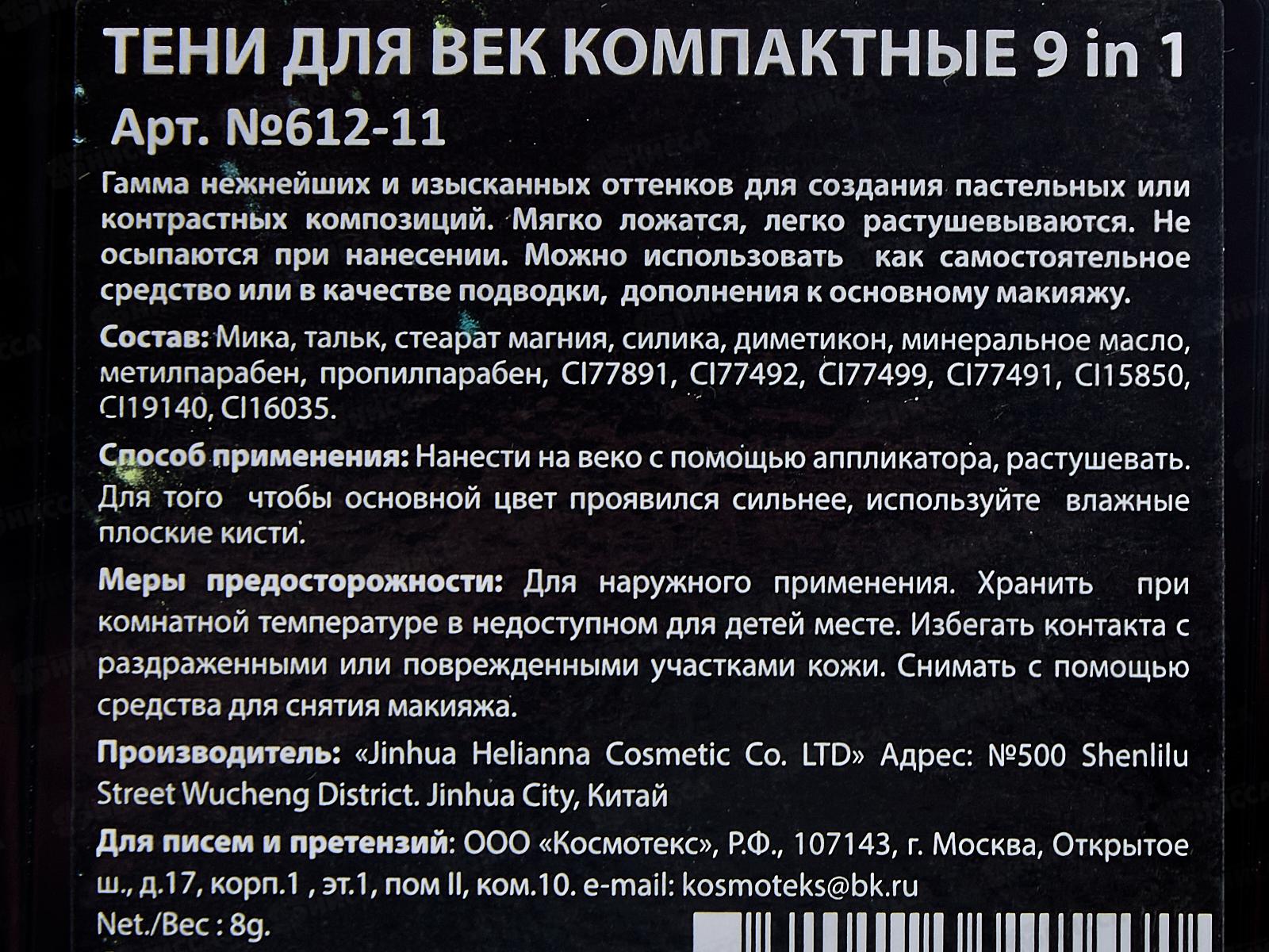 Тени НАЙС 0612-11 9 цветов 8г *6