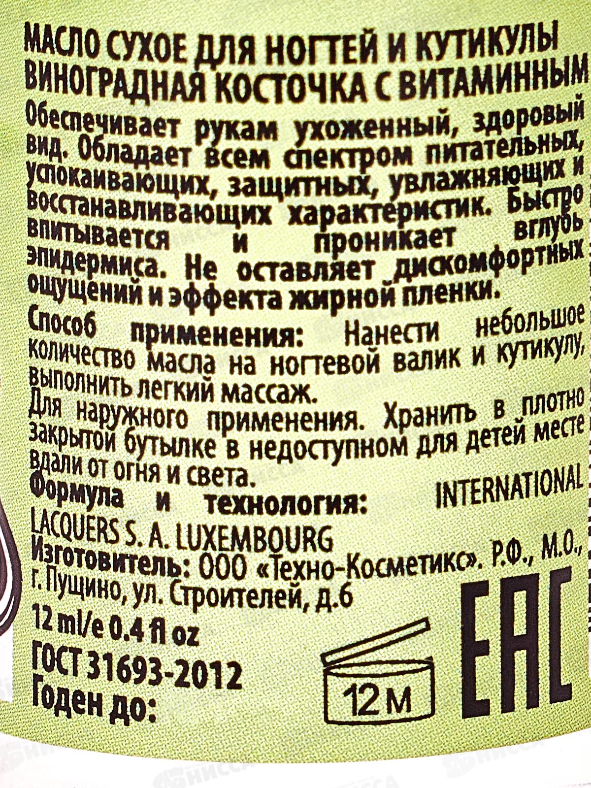 НАЙС Масло сухое д/кутикулы 12мл 503-1 Виногр косточка *12
