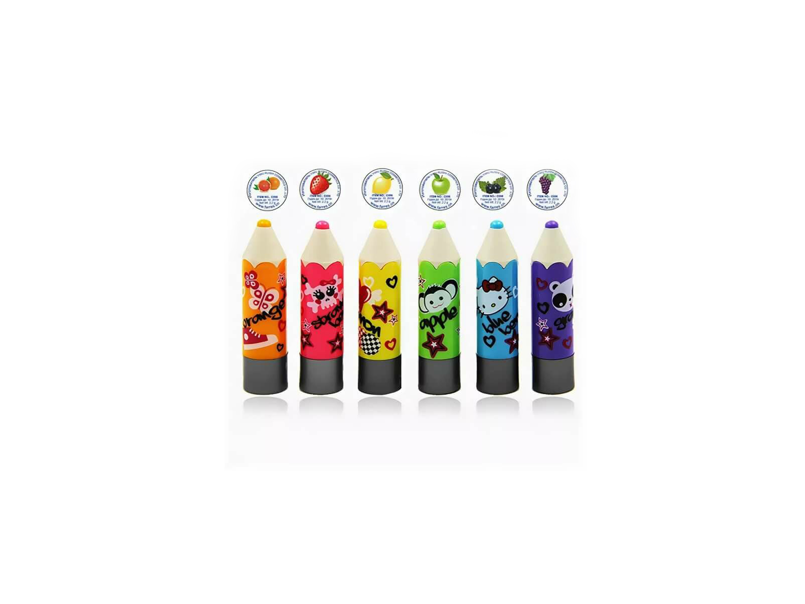 Гигиеническая помада в модной яркой упаковке в виде карандашика. Дети будут в востор ге! Понравится детям и взрослым. 6 фруктовых вкусов. Бо гатый состав обеспечит уход и питание! Стойкость 24 часа!