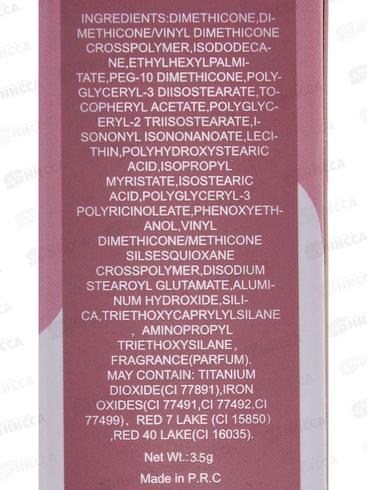 Состав: диметикон, сополимер диметикона и винилдиметикона, изододекан, этилгексилпальмитат, диметикон ПЭГ?10, полиглицерил?3 диизостеарат, ацетат токоферила, полиглицерил?2 триизостеарат, изононил изононаноат, лецитин, полигидроксистеариновая кислота, изопропилмиристат, изостеариновая кислота, полиглицерил?3 полирицинолеат, феноксиэтанол, сополимер винилдиметикона/метикона силсесквиоксана, дистеароилглутамат динатрия, гидроксид алюминия, диоксид кремния, триэтоксикаприлилсилан, аминопропилтриэтоксисилан, парфюмерная композиция, может содержать: диоксид титана (CI?77891), оксиды железа (CI?77491, CI?77492, CI?77499), красный лак (CI?15850)