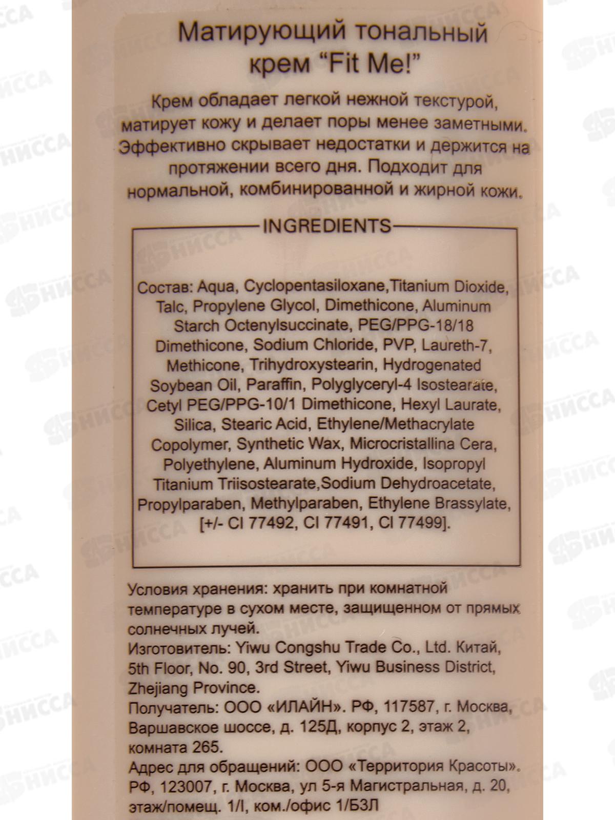 Farres тональный крем Fit Me 4057-102 Слоновая кость матирующий *3