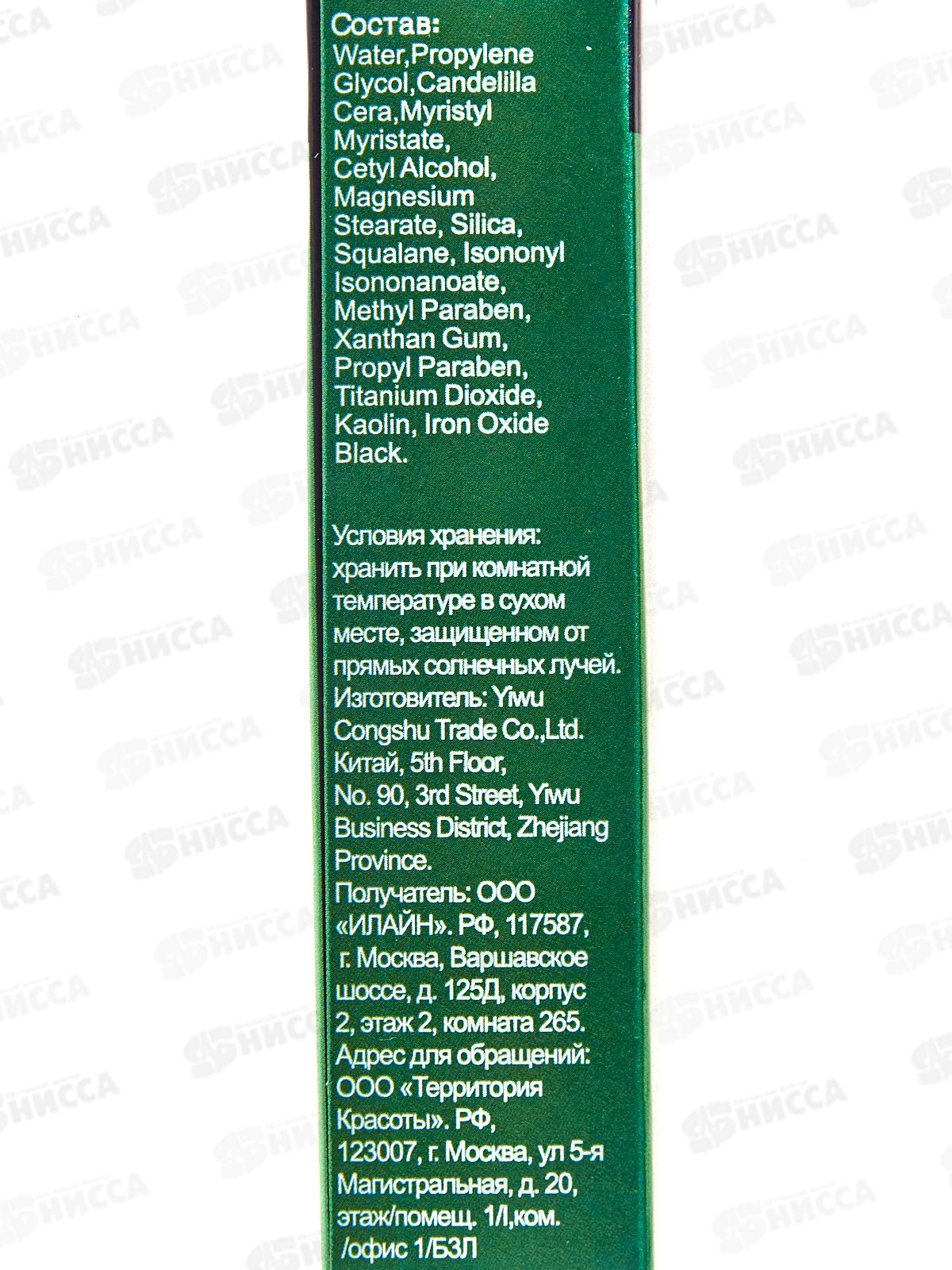 Состав: вода, пропиленгликоль, канделильский воск, миристилмиристат, цетиловый спирт, стеарат магния, диоксид кремния, сквалан, изононилизононаноат, метилпарабен, ксантановая камедь, пропилпарабен, диоксид титана, каолин, оксид железа черный.