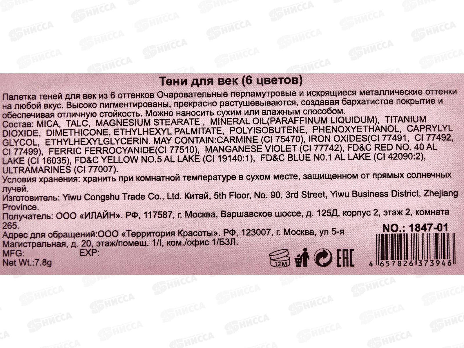 Farres тени для век 6 цветов 1847-01 *24