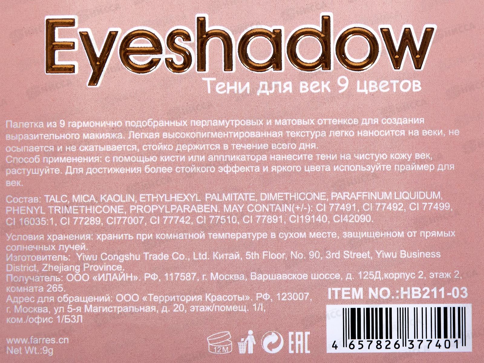 Farres Тени для век HB211-03 9 цветов Россия *12