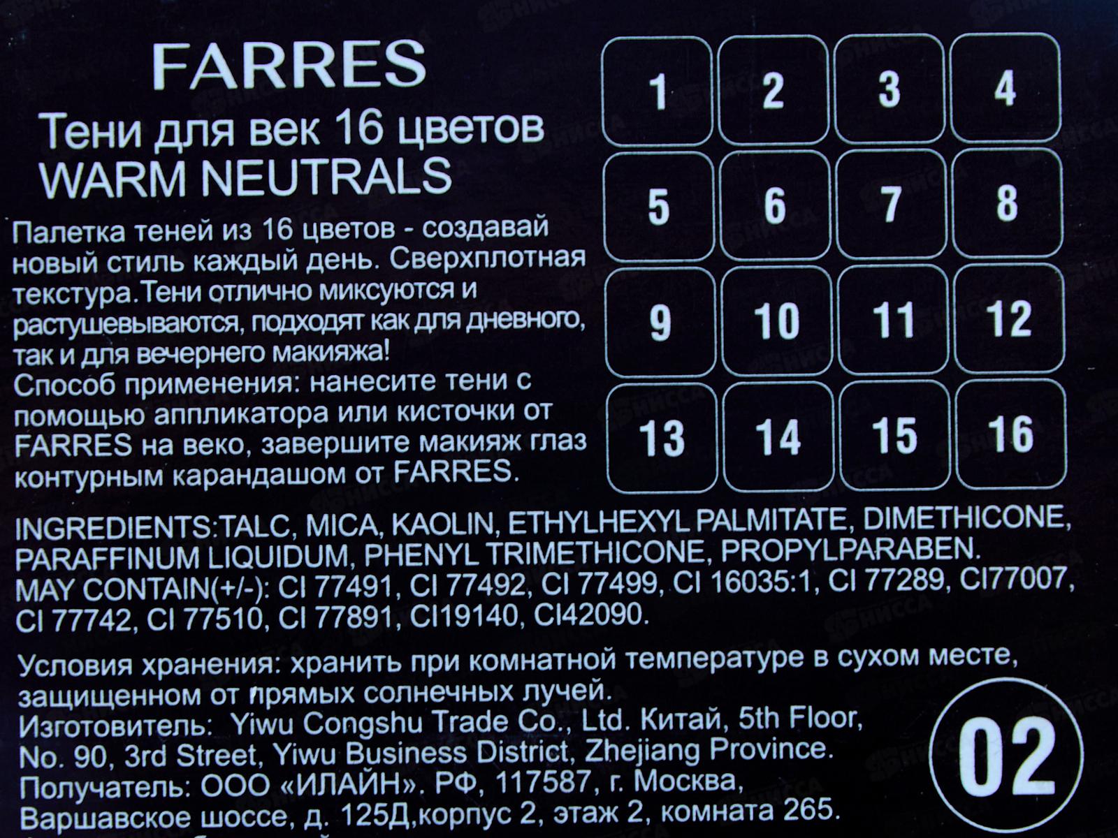 Farres Тени для век 1844 16 цветов *12