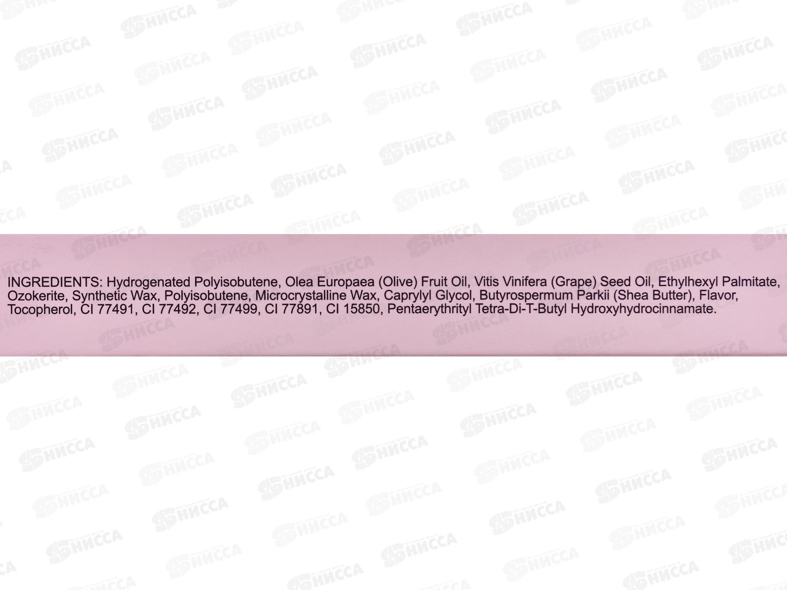 Состав: гидрогенизированный полиизобутилен, масло плодов европейской оливы (оливковое), масло виноградных косточек, этилгексилпальмитат, церезин, синтетический воск, полиизобутилен, микрокристаллический воск, октилглицерин, масло ши, отдушка, токоферол, CI 77491, CI 77492, CI 77499, CI 77891, CI 15850